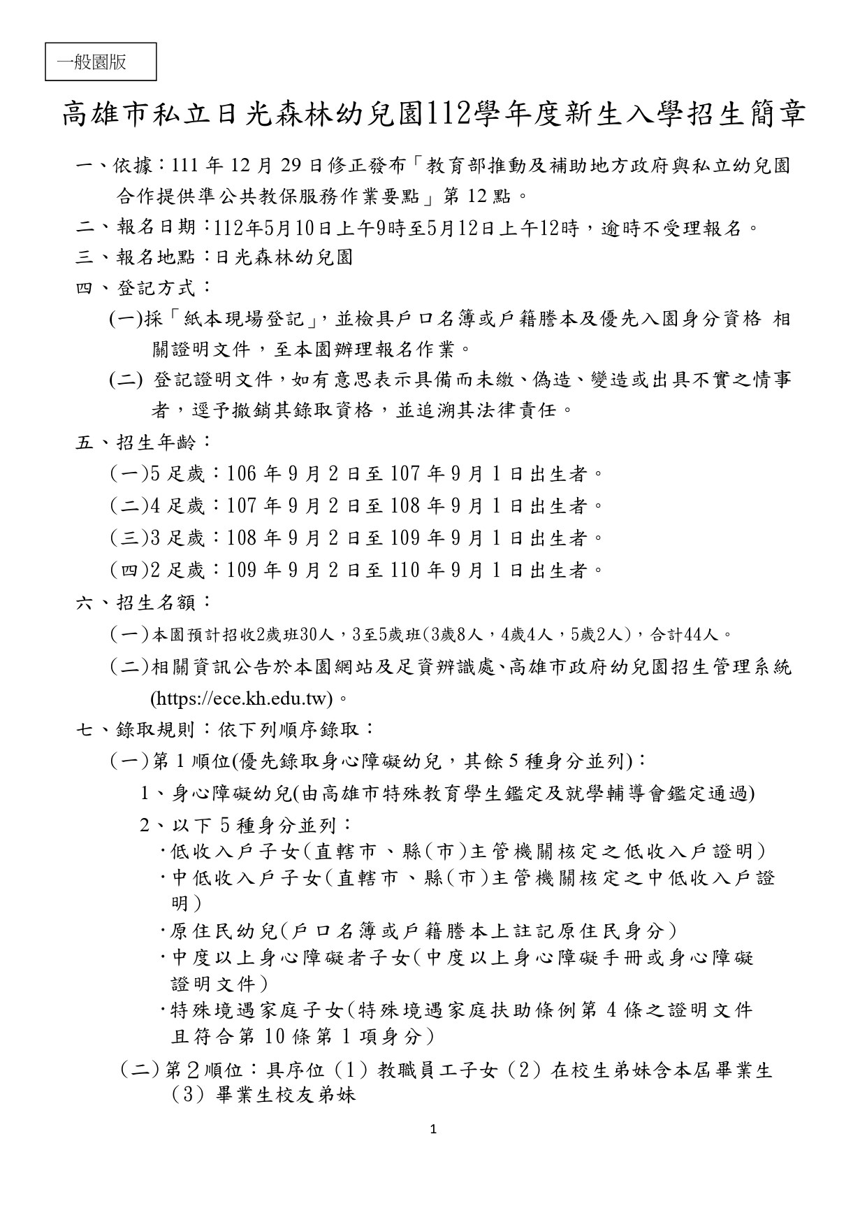 《招生公告》112學年度 新生招生簡章