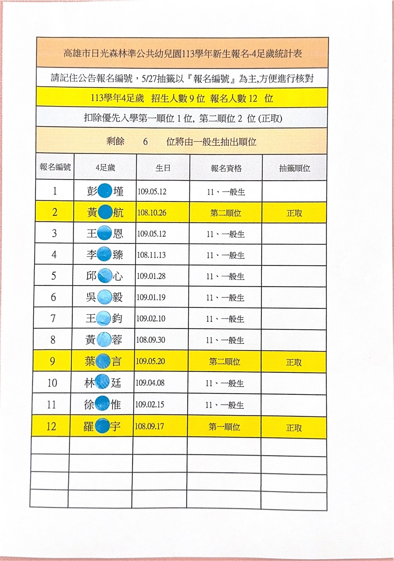 《招生公告》113學年度 新生報名統計表-4足歲班