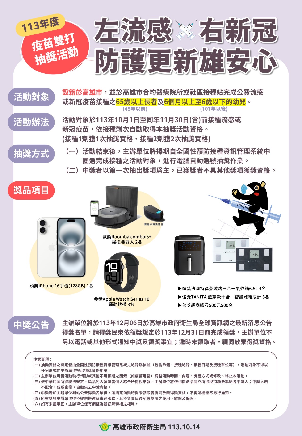 高雄市政府辦理「113年度疫苗雙打抽獎活動」,